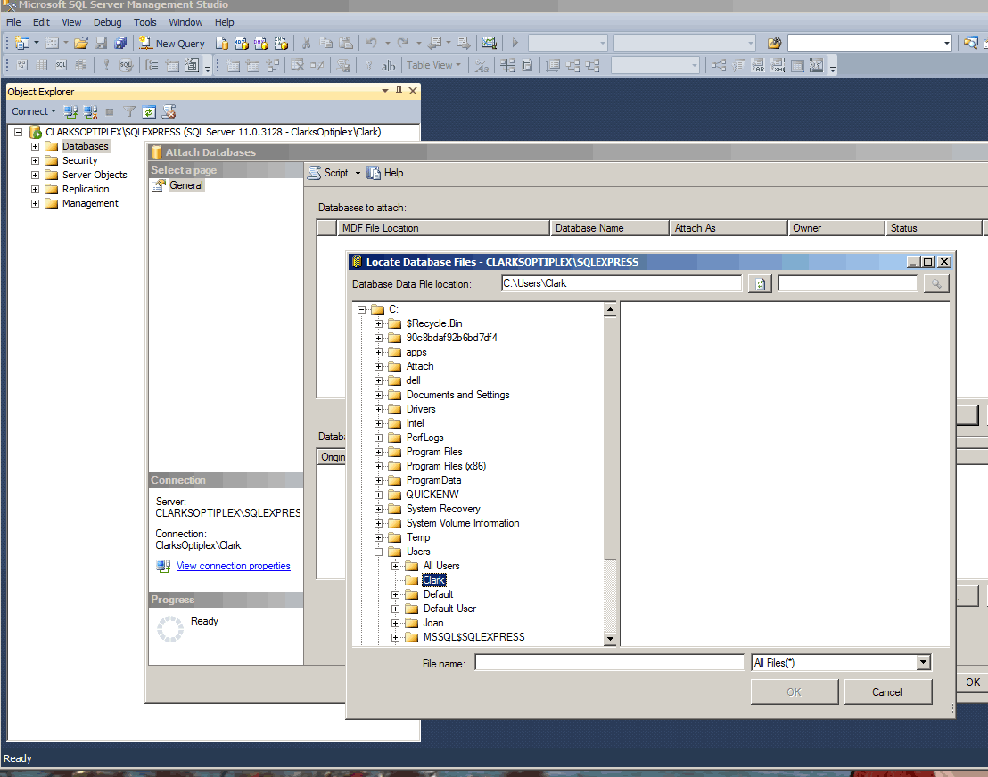 I have Management Studio installed, and trying to attach to it an mdf file on my computer.